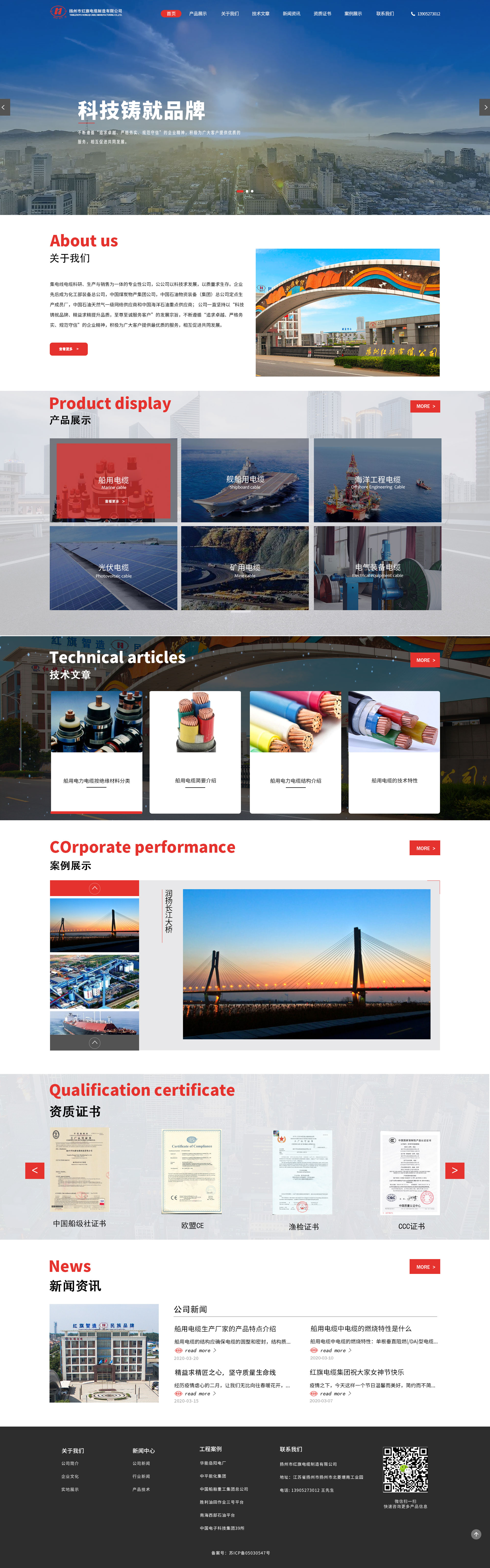 扬州市红旗电缆制造有限公司创办于1989年,是集电线电缆研发、生产、销售为一体的股份制企业。企业位于风景秀丽的历史文化名城扬州市北郊,系国家高新技术企业、省服务型制造示范企业、省创新型企业、省民营科技型企业。企业坚持以人为本,以市场需求为导向,以科研单位为依托,以技术创新为支撑,以实施品牌战略为动力,不断增加投入,扩大生产经营能力,提高核心竞争力,促进了企业持续又好又快发展。